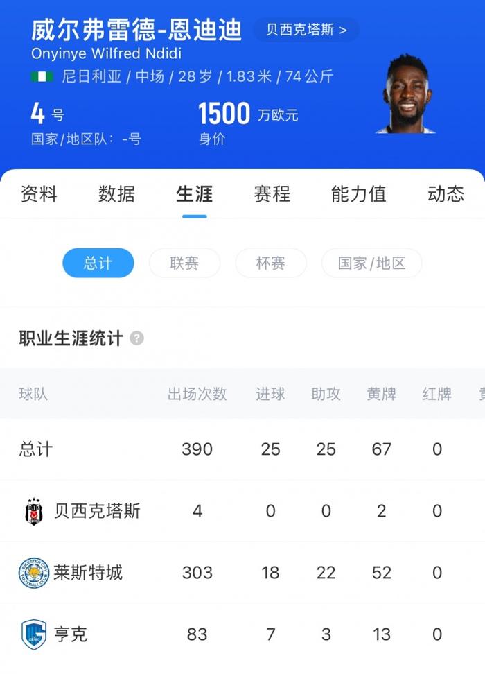 恩迪迪现年28岁,今夏从莱斯特城加盟贝西克塔斯,他曾随莱斯特城赢得社区盾杯和足总杯冠军。