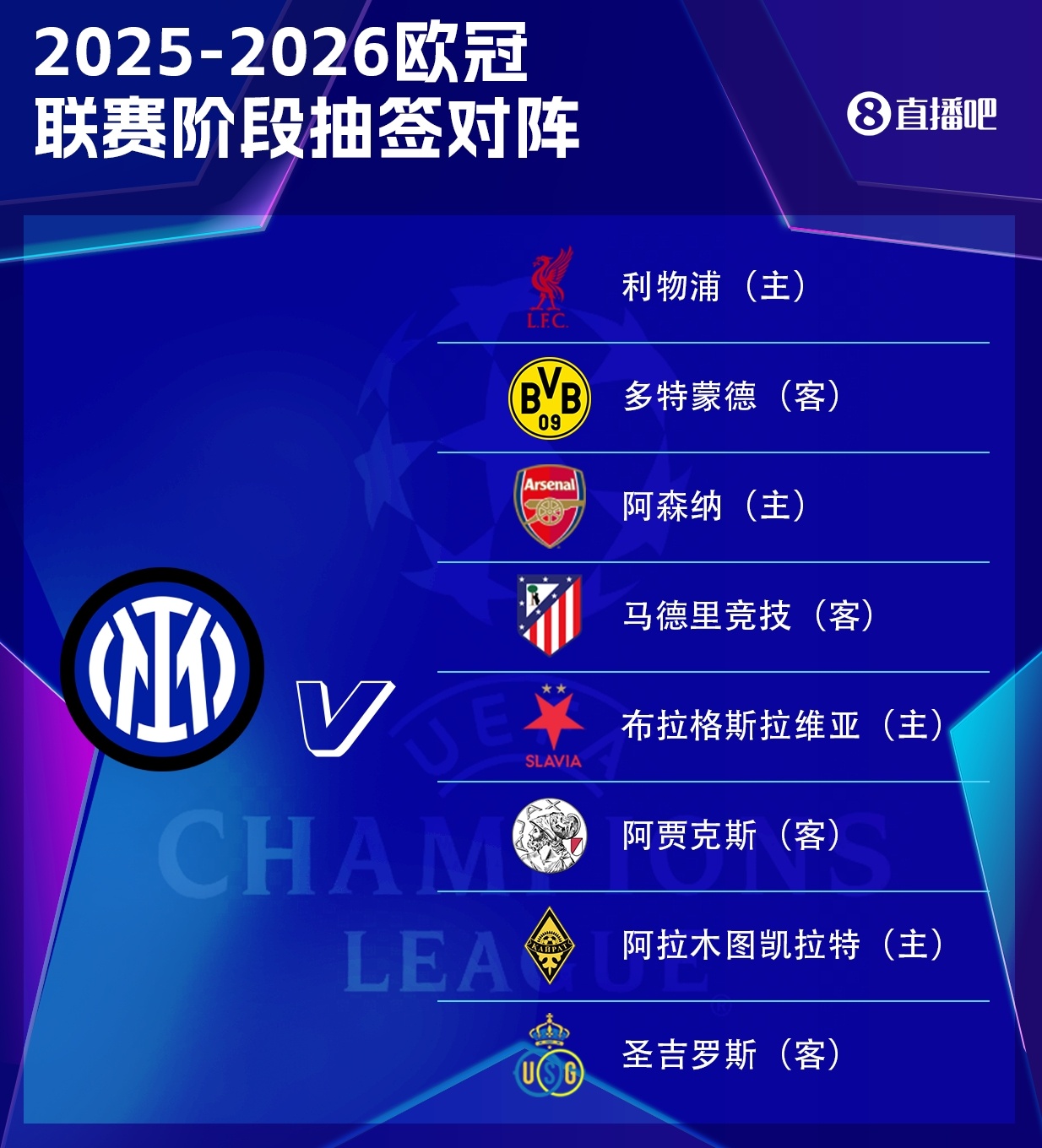 8月30日,欧足联官方正式发布了2025/26赛季欧洲冠军联赛联赛阶段的全部赛程安排,其中国际米兰的比赛日程如下。